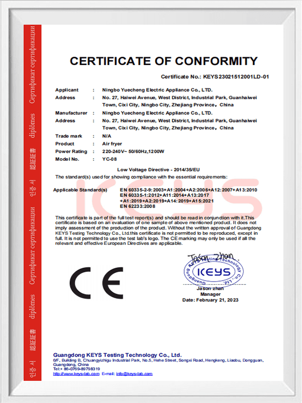 認証- Ningbo Yuecheng Electric Co., Ltd.